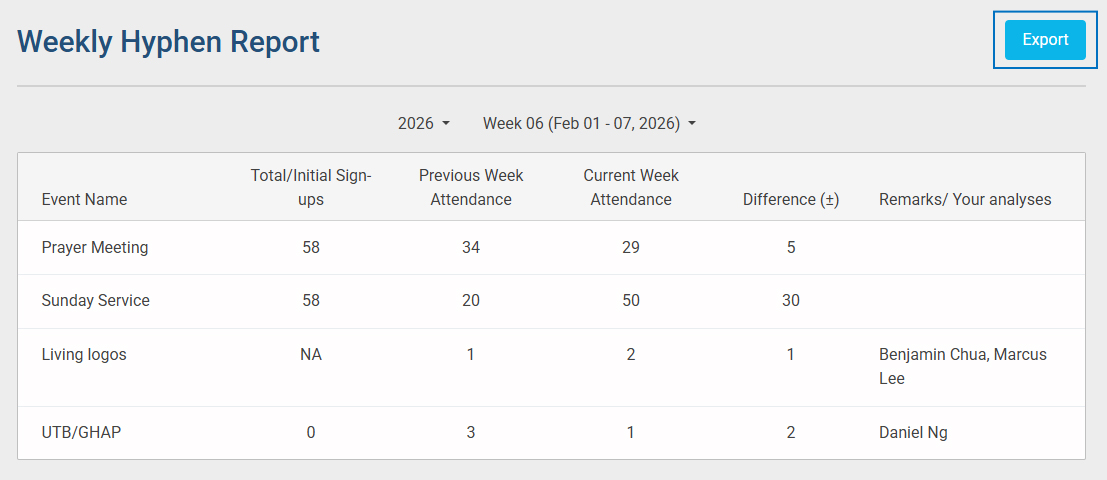 - Additionally, you can export the report by clicking the Export button in the top-right corner.