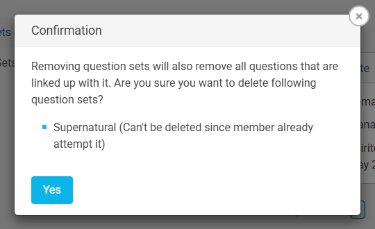 • When you click the Delete option, a confirmation message will appear asking whether you want to delete the question set. Click OK to confirm and permanently delete the question set.