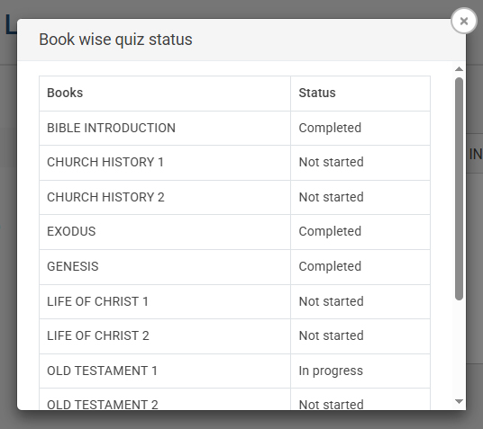 - Also you can click on the Student name to get the Book wise quiz statuses