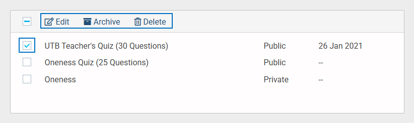 1. Check the checkbox next to the title to make changes. Use the options in the top bar to select the action you want to perform.