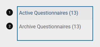 - Here, you will find Active Questionnaires, which lists currently Active questionnaires, and Archive Questionnaires, where previously archived questionnaires are stored.