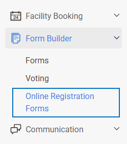 - Go to the Form Builder tab on the left panel, from there go to the Online Registration Forms directory.