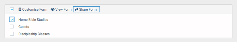 - Check the checkbox next to the form title to get access to multiple options from there click the Share Form option.