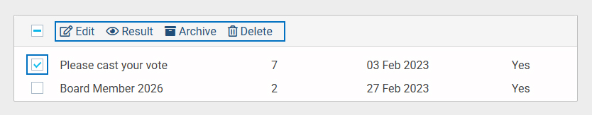 • Check the checkbox next to the voting title to see options, click on the result option